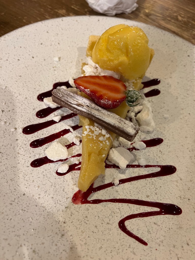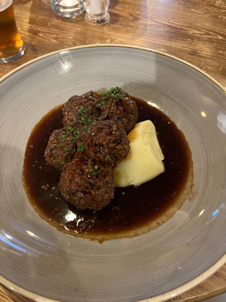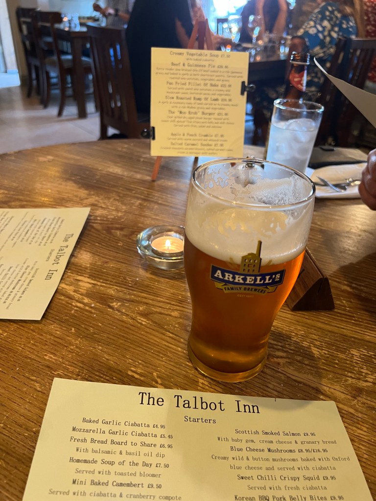 The smallest cygnets.Shifford Lock, or is it Eynsham Lock? My notes are hazy.My bag exploded. An Airbnb in Eynsham due to campsite closure. The huge teddy came with the room.Pub meal with Sandy and Pete. The beer is fantastic at the Talbot Inn,as are the victuals at this newly reopened pub.Meat feastStill hungry,this hits the spot.