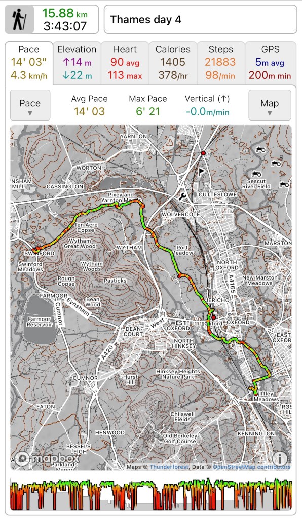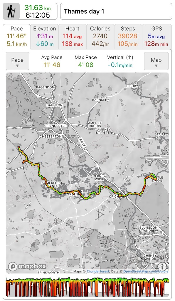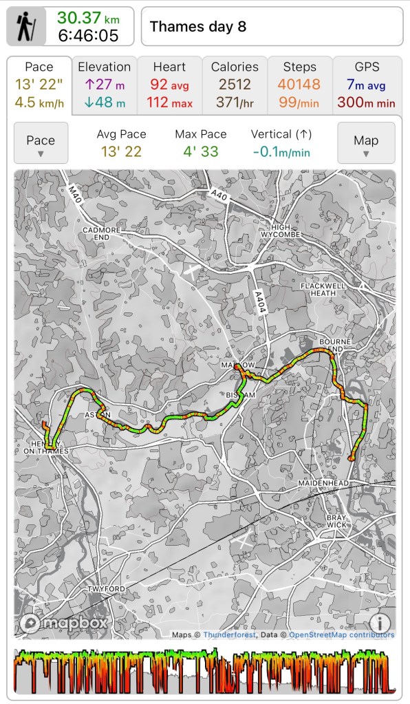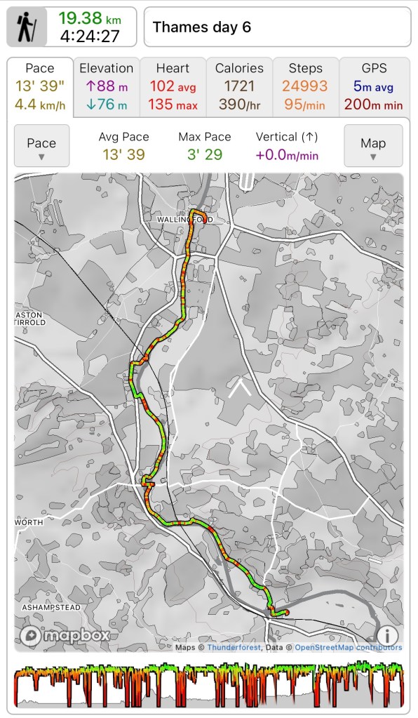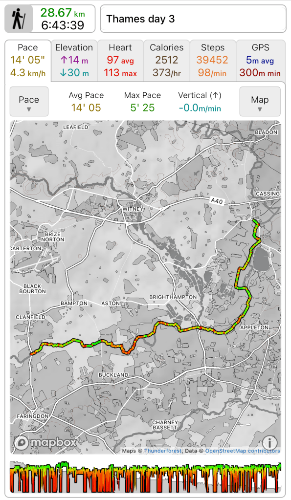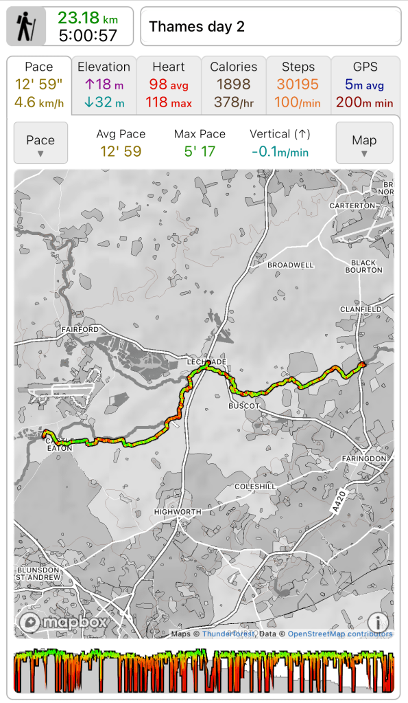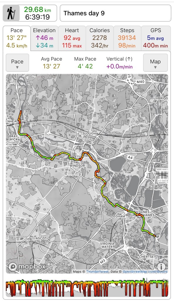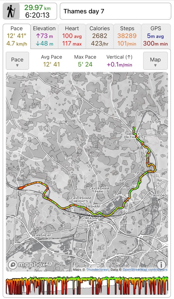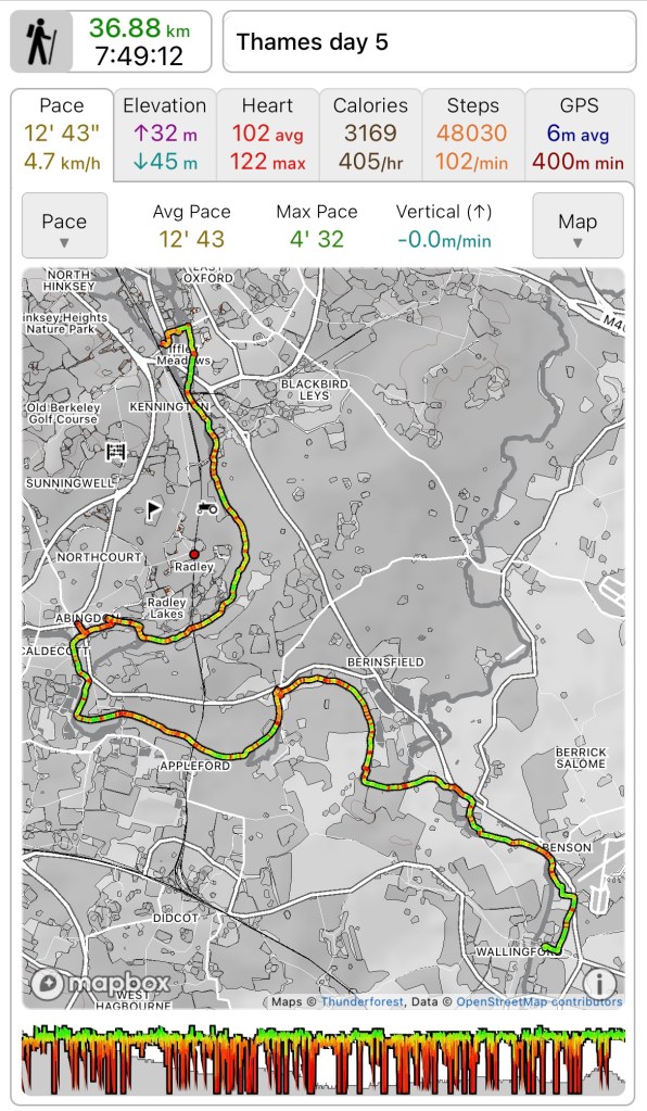 Total distance walked 277.4k out of an anticipated 373k. 74% which is pretty good actually. 95k to finish in the autumn which seems eminently doable, as long as I listen to my body.