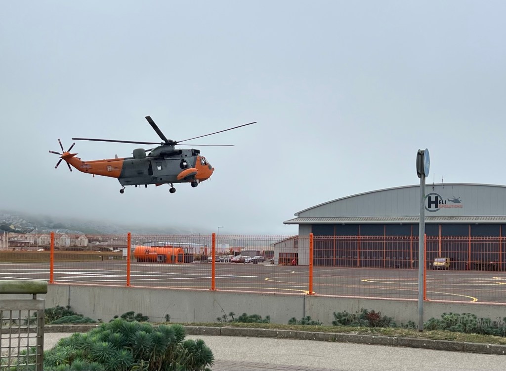 Pausing for a fruit lunch on the marina I was serenaded by two helicopters landing.