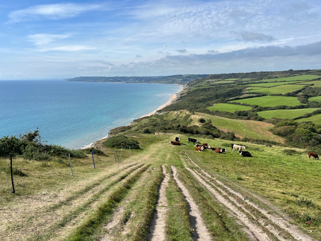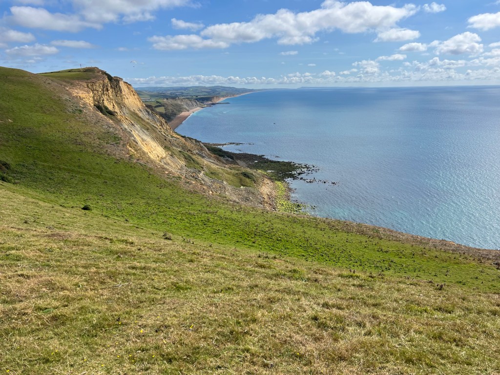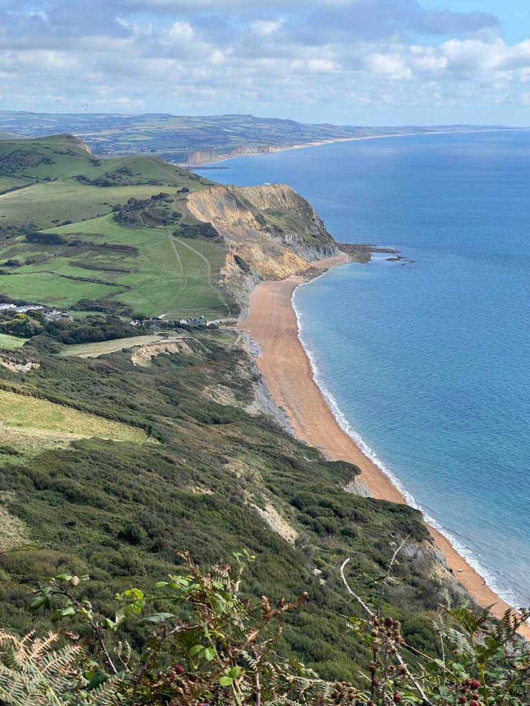 I raced up Thorncombe Beacon and came down to Seatown bursting with life. Of the known sections this bit is up there as one of my favourites. A blackcurrant ripple ice cream to spur me up Golden Cap. Last time I fastpacked it in 28 minutes. How fast am I this time with a thruhike backpack? 26 minutes and 7 seconds. Yess!