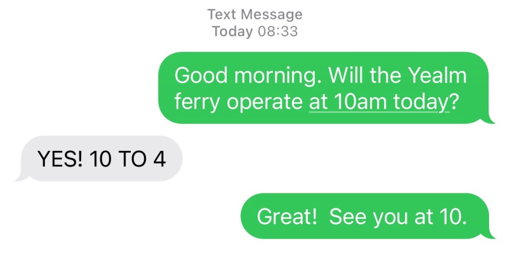 Dog walker wishes me luck. Bill not yet committed to next year. What will happen to ferry if not him?