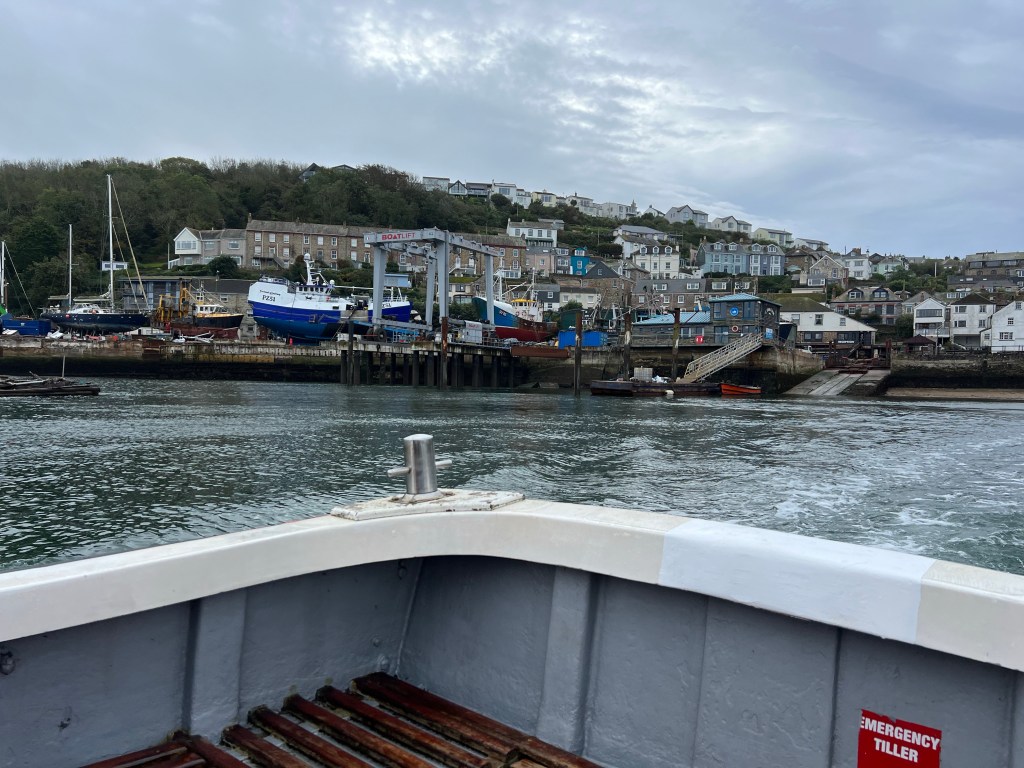 Sitting on a bench quayside eating I have to lift my feet as the raised waves overtop the wall. Moving back I see two fastpackers waiting for the ferry. I strike up conversation asking about conditions to Mevagissey where I head tomorrow. I trade tips about the trail to Polperro. They’re running a coastal section for a few days staying in bnbs. Today they moved inland coming along minor roads and inland tracks as the clifftops were hairy. Having been living the outdoor lifestyle in California for a year they’re now in Oxfordshire. So flat they say, nothing to lift your eyes to. Rugged Cornish coast for a week is giving them a fix. We wish each other luck as the ferry is pushed to the quay by the wind, the pilot struggling to get it in.