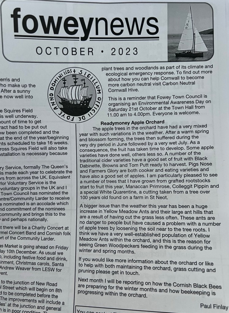 A copy of the free ‘Fowey News’ makes its way into my hands. Fascinating article about their orchard. A few of the apple varieties are new to me.