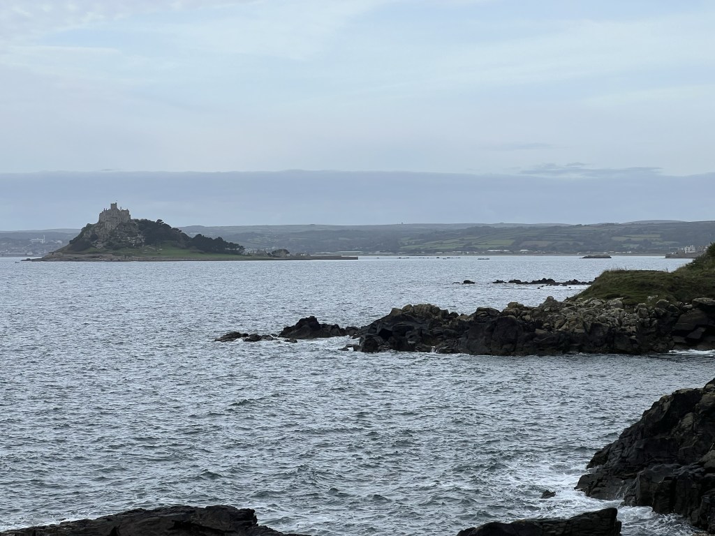 Marazion to Mousehole is along road and promenade. Not that interesting. I walk awhile with another clockwiser and his friendly pooch, sharing trail memories so far. My pace, faster than his, separates us later, still on the interminable pavement.