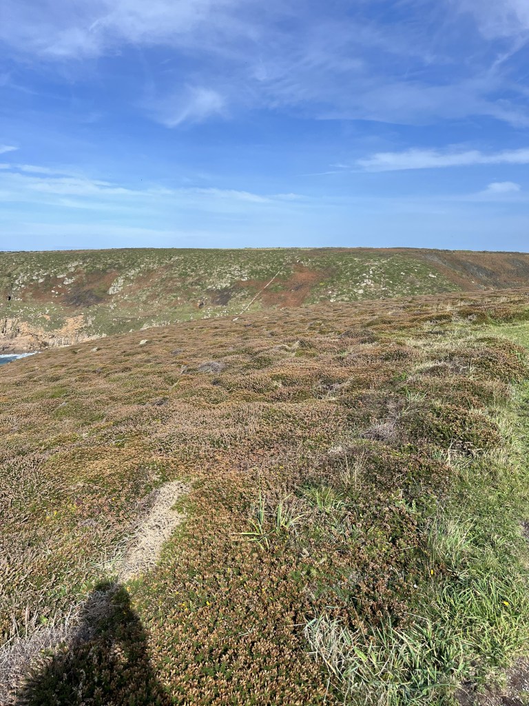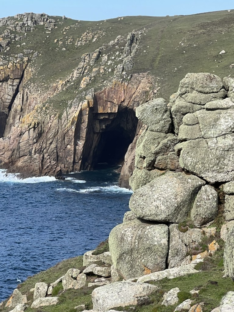 The mini cafe at Porthgwarra has tasty treats for sale. Sadly cash only as an overnight power cut has knocked out their electronics. My spare change just stretches to a chocy coffee. Note to self – carry more cash at all times. Since Covid I’ve got out of the habit. Full grub will have to wait until Lands End or Sennon Cove. I find a few nuts knocking about in a forgotten pack pocket to keep me going. Must replenish emergency nut supply.