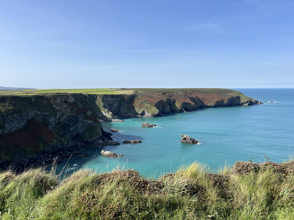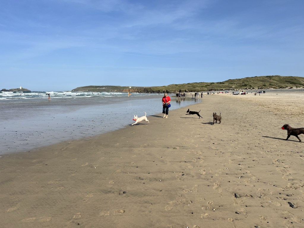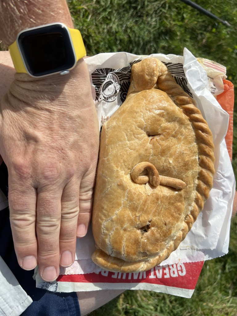 Sitting in the grass atop the dunes at Godvery Cove, eating half of a large Philps steak pasty, I’m in a happy place. The tide was going out which meant I’d been able to walk 6km here from Hayle in the golden sands. It’s a balmy 20C in early October. The beaches are pleasantly full of surfers, windsurfers, bodyboarders and dogs all playing.