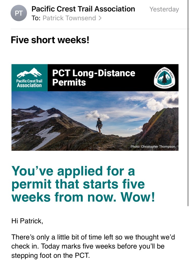 5 weeks doesn’t seem a lot given the list of jobs I’ve given myself. Keeping busy stops me daydreaming about the PCT!