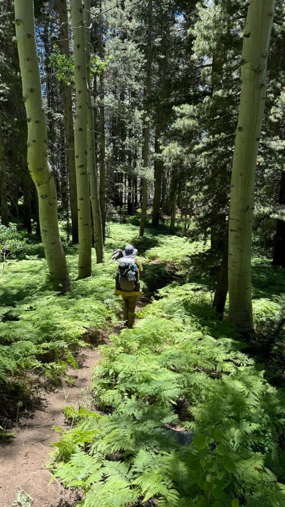 Rock scrambling up 1000ft, crossing granite ledges for 2 miles, grade 3 scrambling down 800ft. Cliffing out twice and having to backtrack vertically. Getting lost, loosing the trail, running out of water until I found the waterfall. I decided to sit until someone else came along, only 5 minutes until a confident scrambler came down. Bird had an uncanny ability to sniff out the trail and easily slither down it. I was only 20ft from it but hadn’t seen it. Asking if I could tag along with him back down to the PCT, he agreed as long as I kept up with him. Graciously he paused several times as I nervously followed the obvious track down a very steep slope, sweating copiously at the limit of my comfort zone of scrambling and climbing. Never my strong point, steep downhills triggered my vertigo.