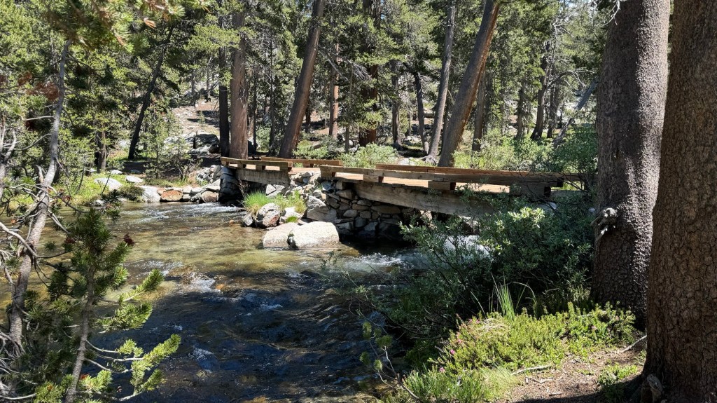 I’ve decided to come off the trail at the next road crossing which is 9 miles for tomorrow. I’ll talk to the ranger about options – hitch east back into the valley of Mammoth, Bishop etc, or west into Yosemite Valley. I favour Yosemite as a) I get to see the sights there; and b) my buddies Joe and Sai are west of here – it should be easier to get to them if I’m on their side of the Sierra Nevada.