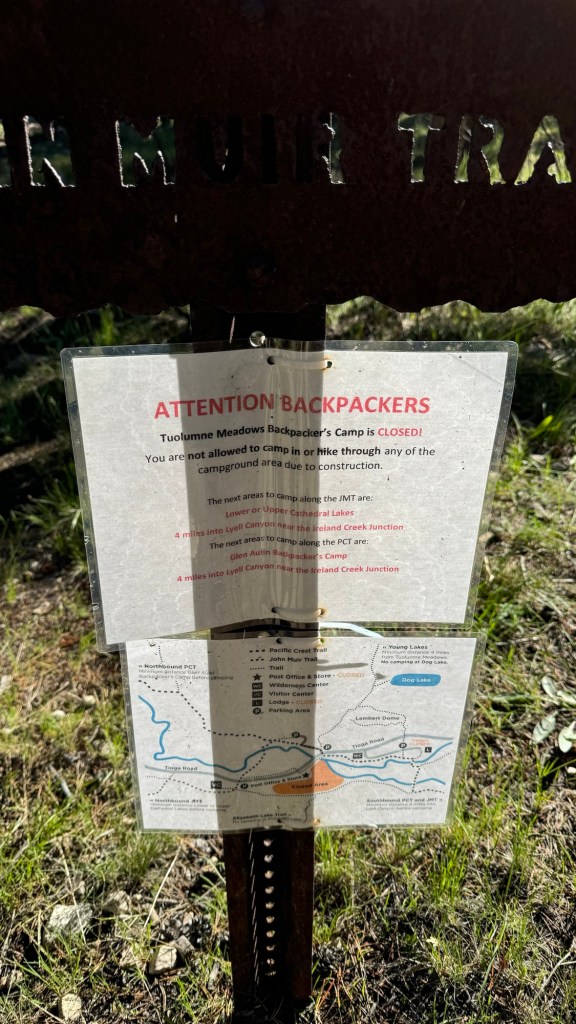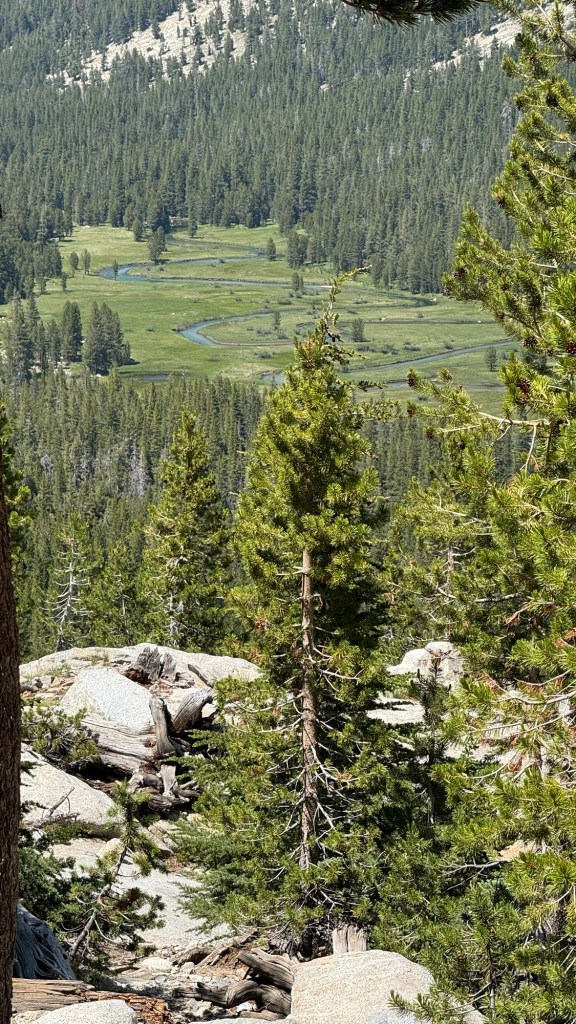 Today was Donahue Pass, an easy 11100 foot summit of gentle ascent and descent. I really struggled. It took me 6 hours to do the 6 miles to the top- only 1800ft of ascent, then only managed 2mph for 7 miles of descent. I was stopping every few minutes for a breather, sweating copiously more than normal, and I’m a big sweater anyway. At mile 13 I threw in the towel and found a tent site.