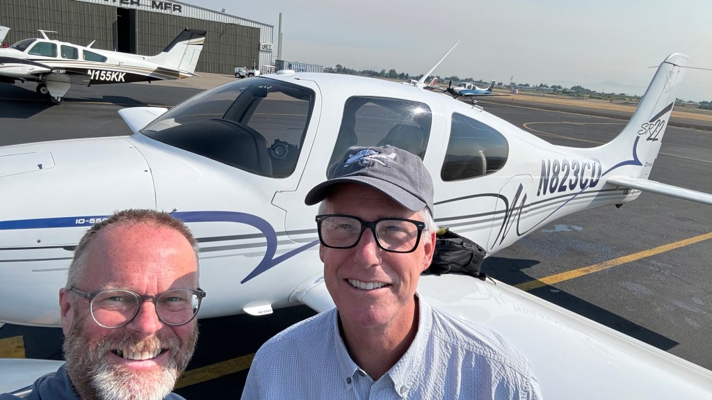 He’s taking it to Medford, Oregon for a service including the 10 year re-pack of the plane parachute. Oregon state has no sales tax unlike California. The cash cost difference makes it more economical to fly 800 miles round trip out of state.