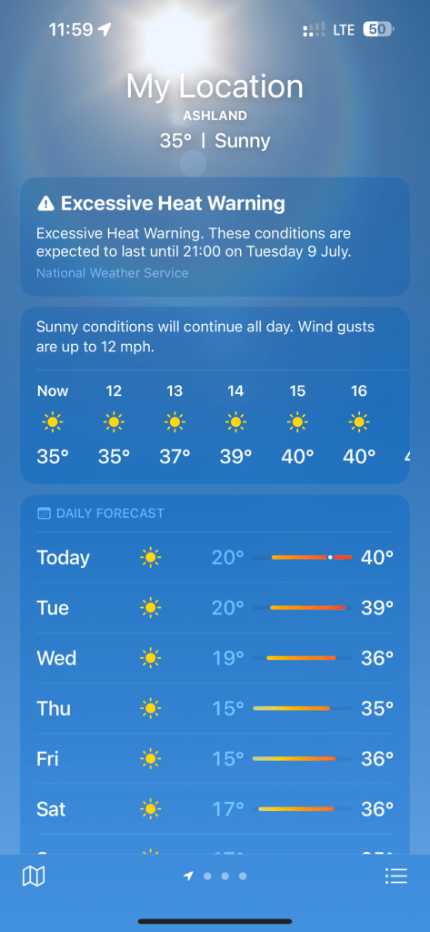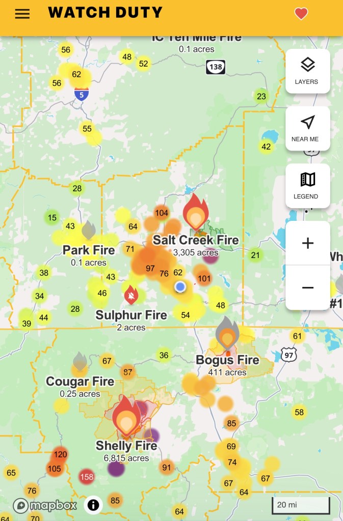 I’ve flown into hell! Ashland is hotter than Kenwood and the smoke is reducing air quality to red levels.